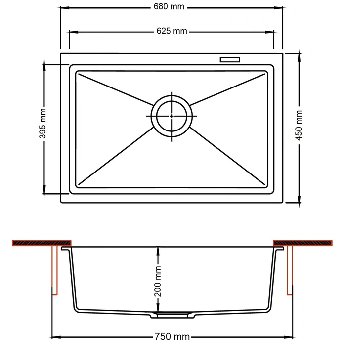 Chiuveta de culoare neagra cu montare sub blat Fabiano Navio 68x45 Antracit