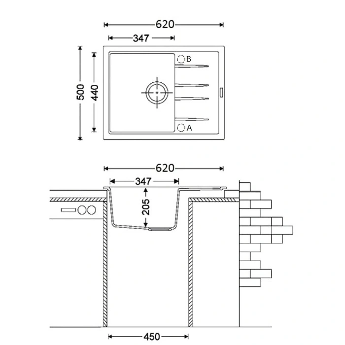 Chiuveta Fabiano Classic 62x50 Antracit