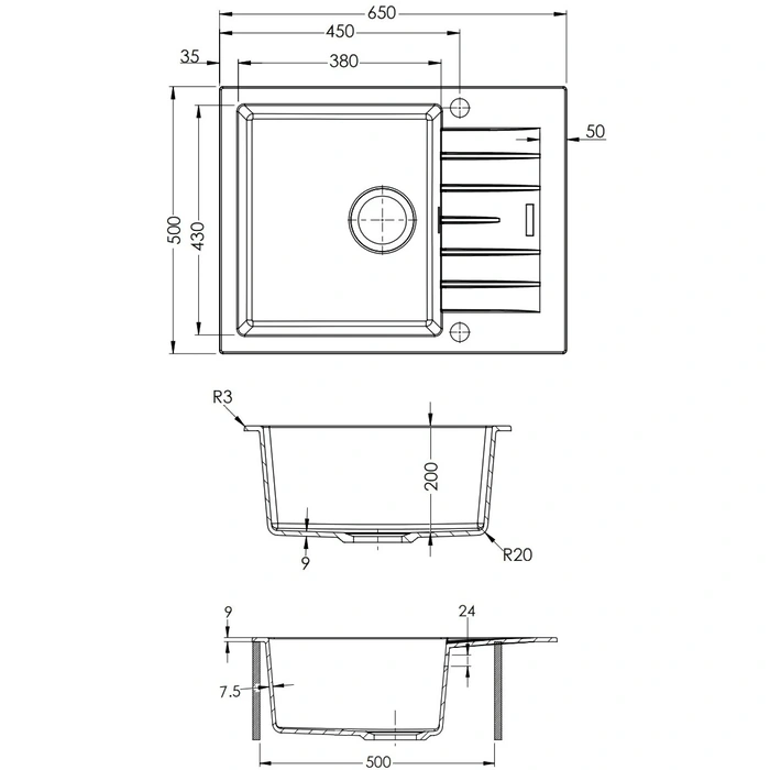 Chiuveta Fabiano Classic 65x50 Grey Metallic