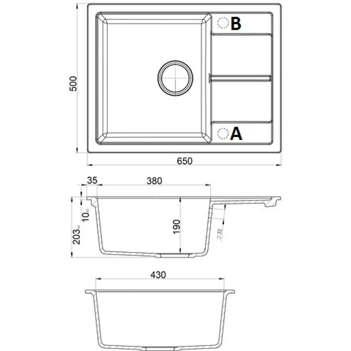 Chiuveta Fabiano Cubix 65x50 Antracit