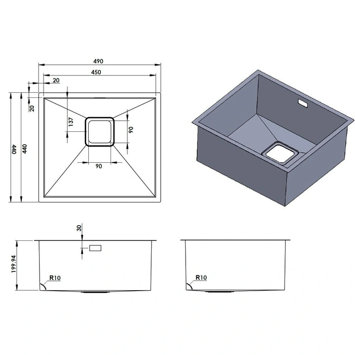Chiuveta Fabiano Quadro 49 Nano Graphite