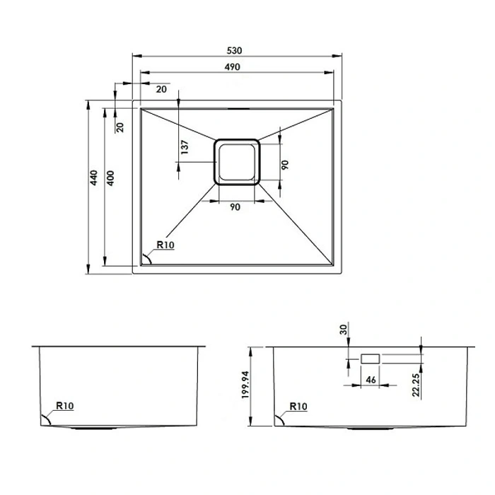 Chiuveta Fabiano Quadro 53 R10 Inox