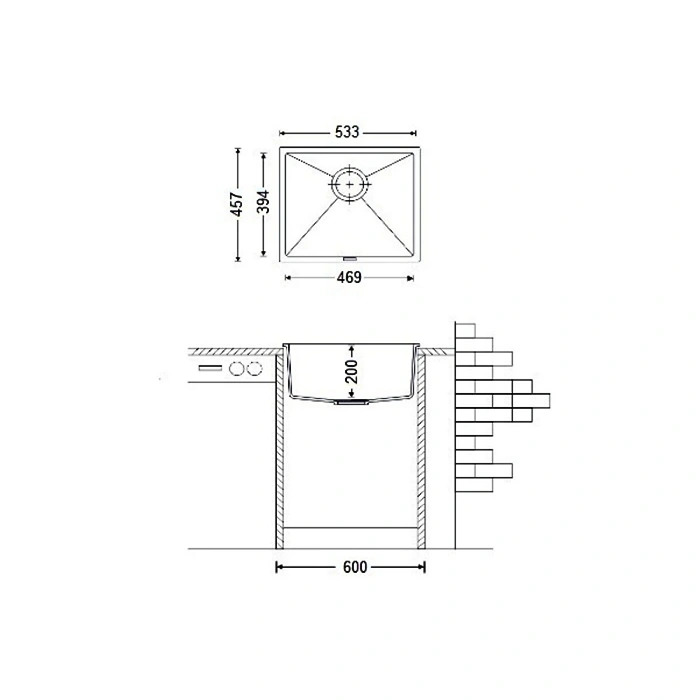 Chiuveta Fabiano Quadro 53x46 Titanium