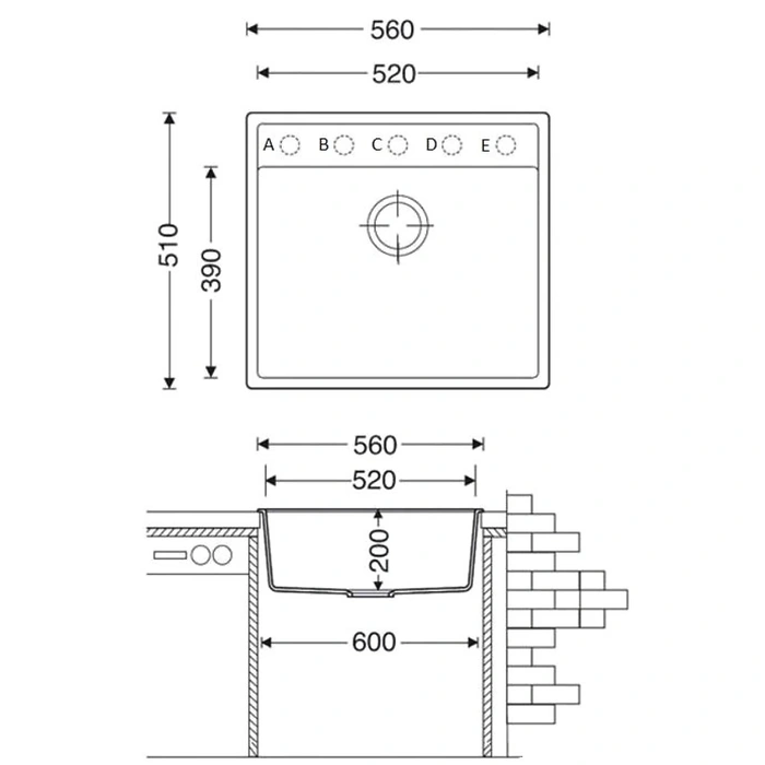 Chiuveta Fabiano Quadro 56x51 Alpine White