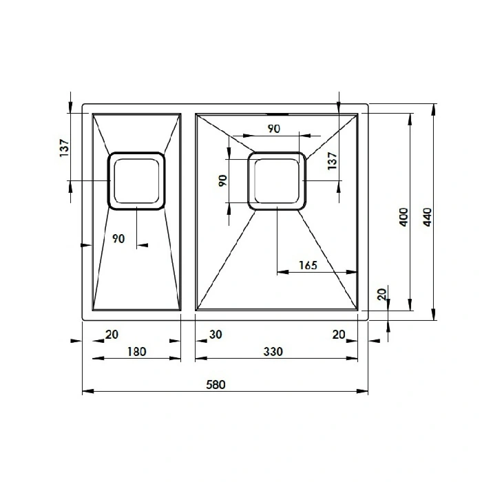 Chiuveta Fabiano Quadro 58x1,5 R