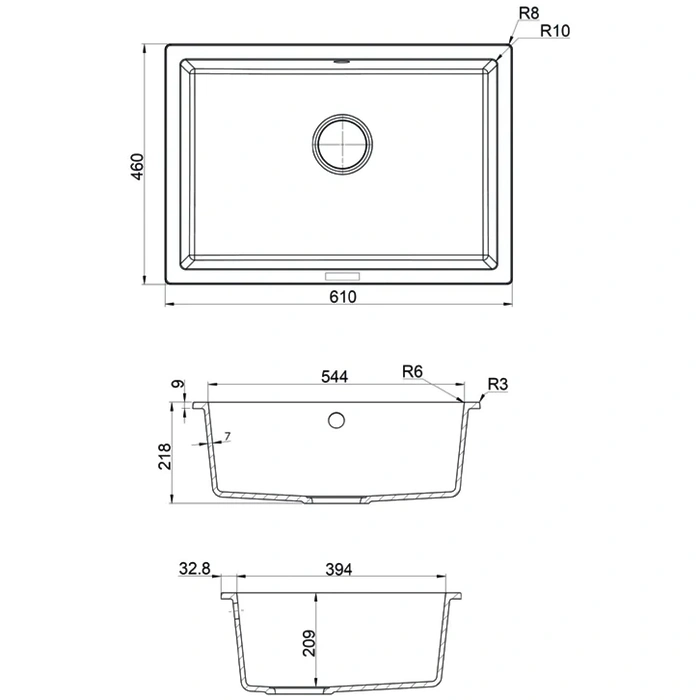 Chiuveta Fabiano Quadro 61x46 Antracit