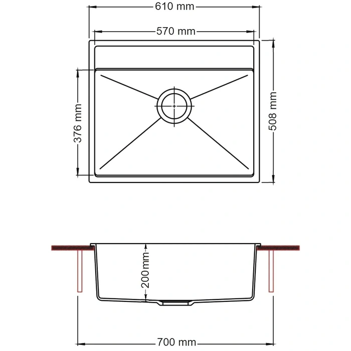 Chiuveta Fabiano Quadro 61x51 Antracit