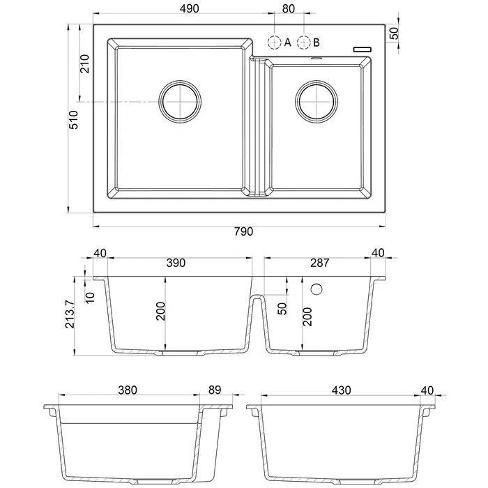 Chiuveta Fabiano Quadro 79x51x2 Antracit