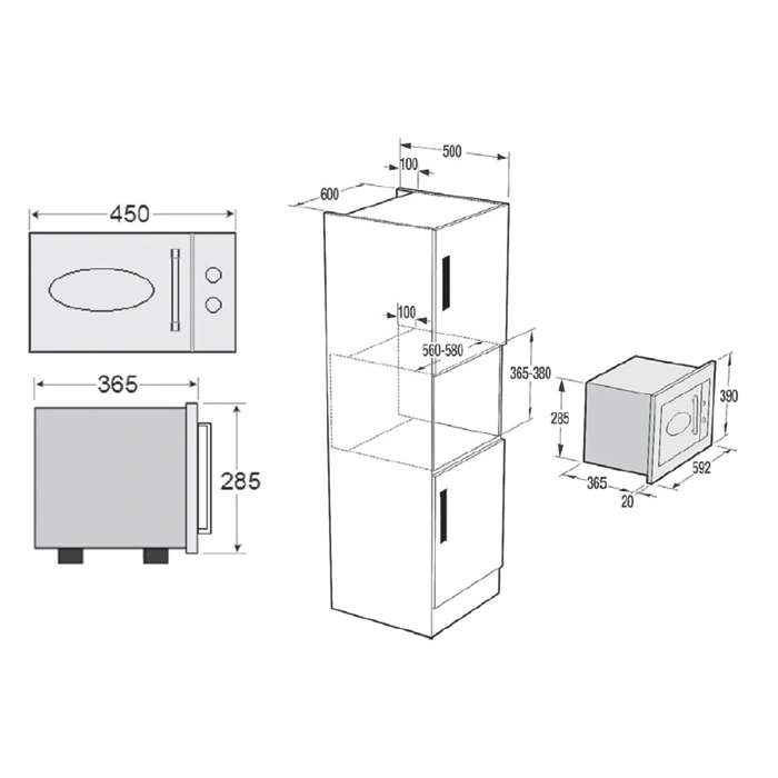 Cuptor cu microunde incorporabil Fabiano FBMR 46 Burgundy