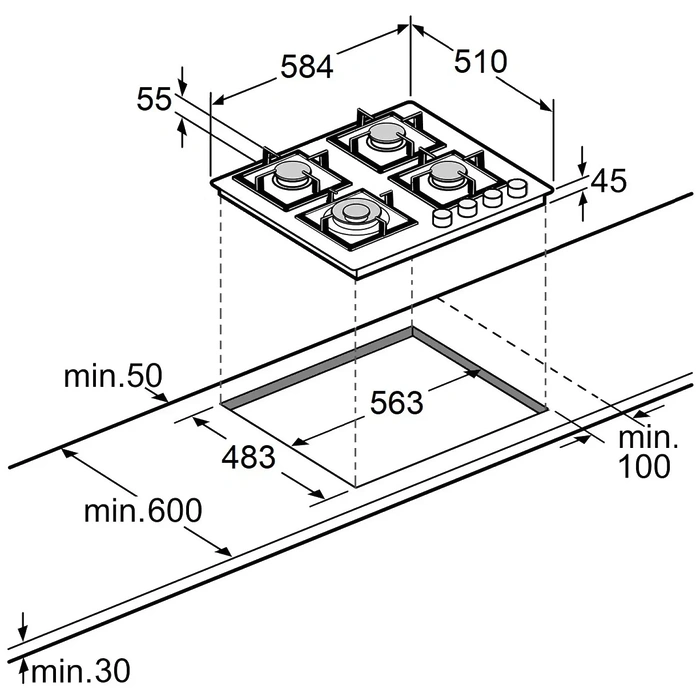 Plita pe gaz Fabiano FHG 8244 VGHT Diamond Black (negru mat)