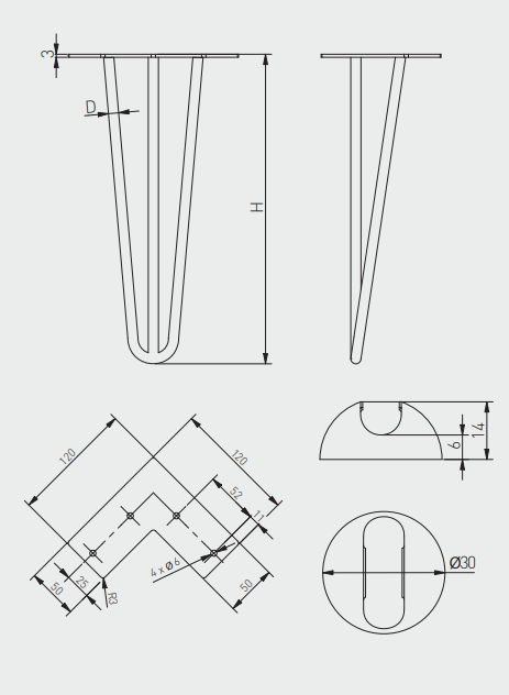 Set 4 picioare pentru masuta cafea ARTO H406 mm, negru mat