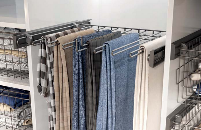 - Extensie totală: Permite extragerea completă a suportului, facilitând accesul rapid la pantaloni și optimizând utilizarea spațiului.